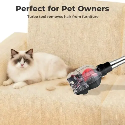 Pet-Friendly Cleaning Tools & Turbo Brush: Specially designed for homes with furry friends, this vacuum includes a dedicated turbo-powered pet tool that lifts deeply embedded pet hair from carpets and furniture without clogging or tangling. Comes with a full set of accessories including a multi-surface floor brush, crevice tool, 2-in-1 dusting brush, washable HEPA filter, and convenient accessory holder for quick access and improved cleaning efficiency.