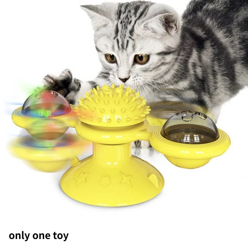 Features: This interactive cat toy combines a windmill scraper and a glowing rotating design to meet the needs of scratching, chasing, and playing.