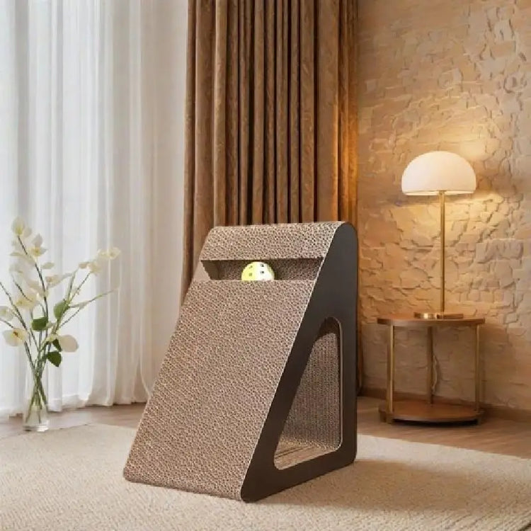2 in 1 Cat Scratcher Cardboard Wear-resistant Triangles Shaped Cat Scratching Board with Rotating Ball Vertical Climbing Frame