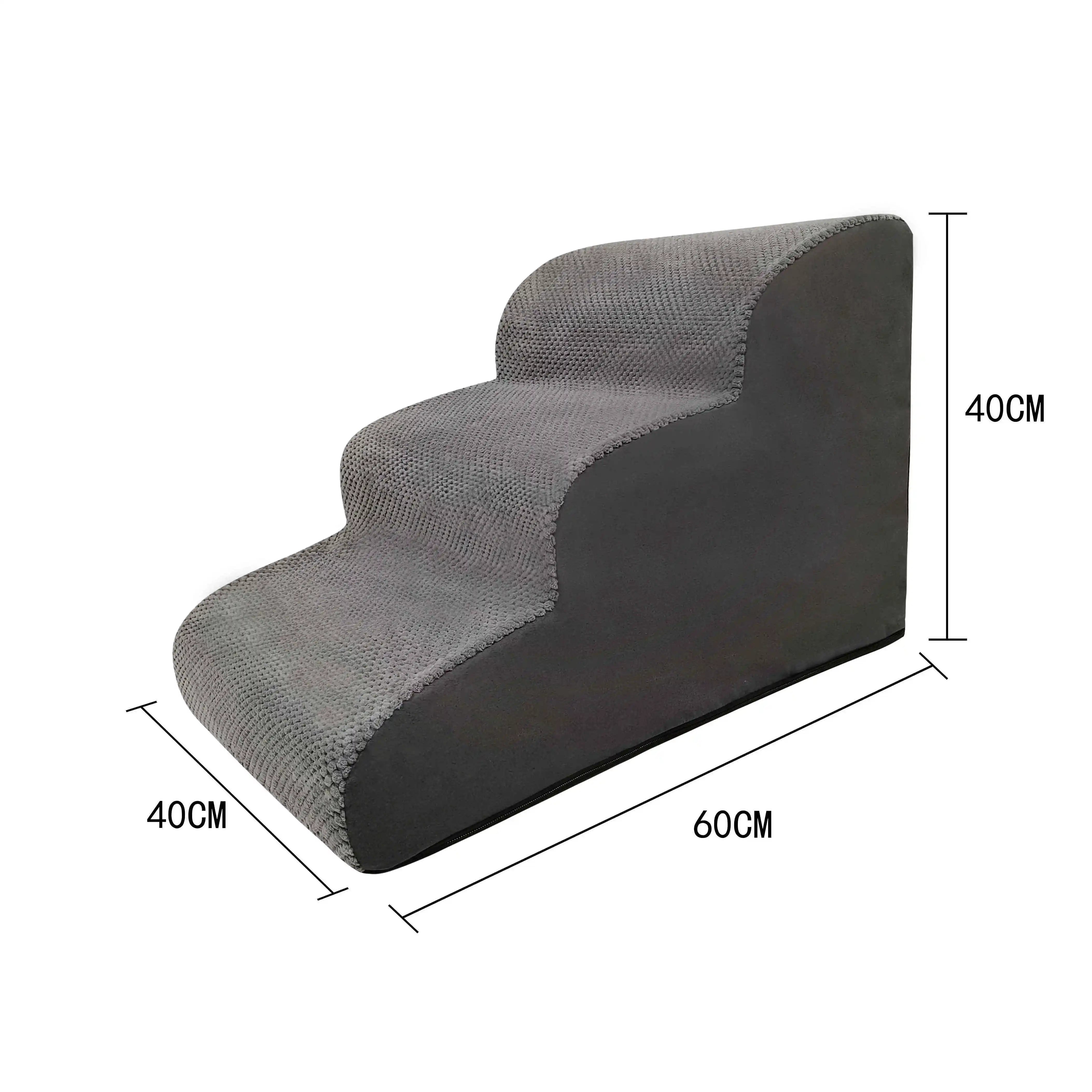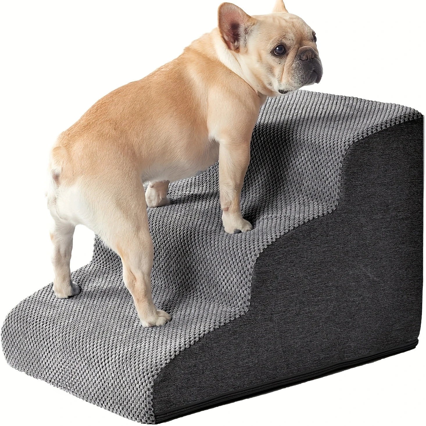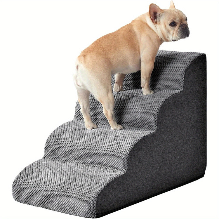 [4-Step Curved Dog Ramp] 4-Step Non-Slip Curved Dog Stairs Ramp for High Beds 20" Height | Soft Grey Carpeted Steps.Labubo.