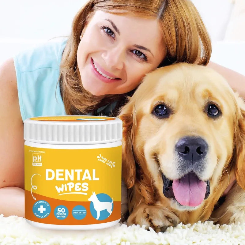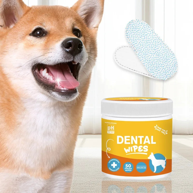 50pcs Pet Dental Finger Wipes Teeth Cleaning Freshen Breath Remove Plaque Tartar for Dogs Cats Oral Care Wipes