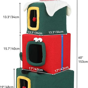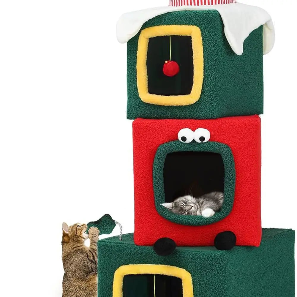 Adorable Aesthetics: Our cat tree tower features a Christmas hat on top, a ribbon-decorated second layer resembling a gift box, and cute big eyes; Making it incredibly adorable and appealing to your feline friends