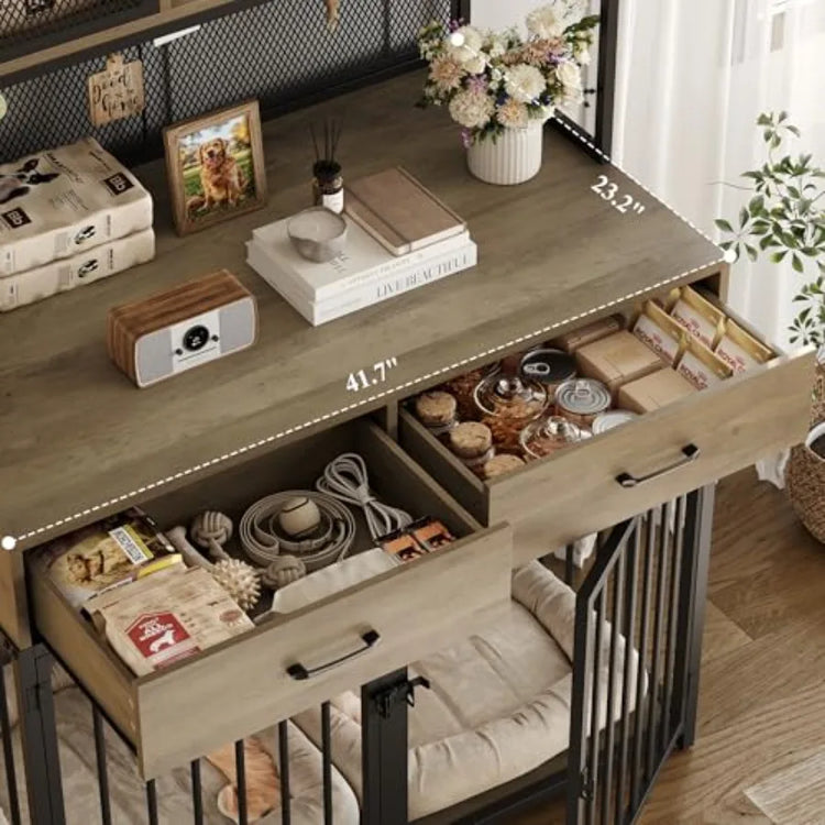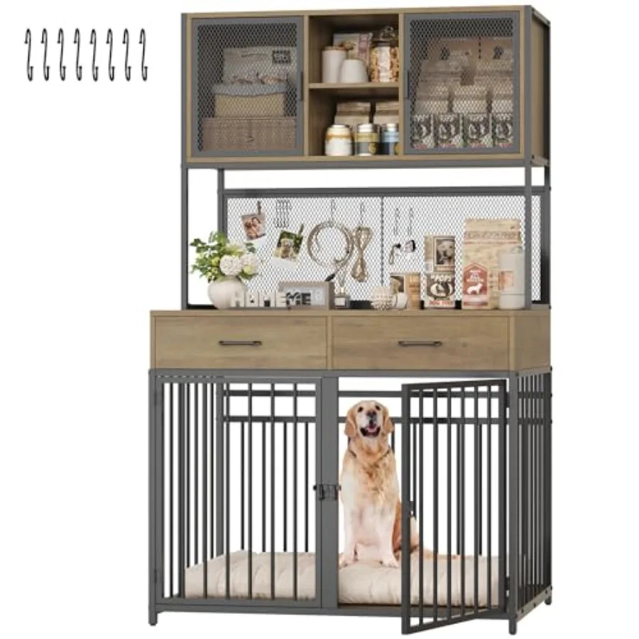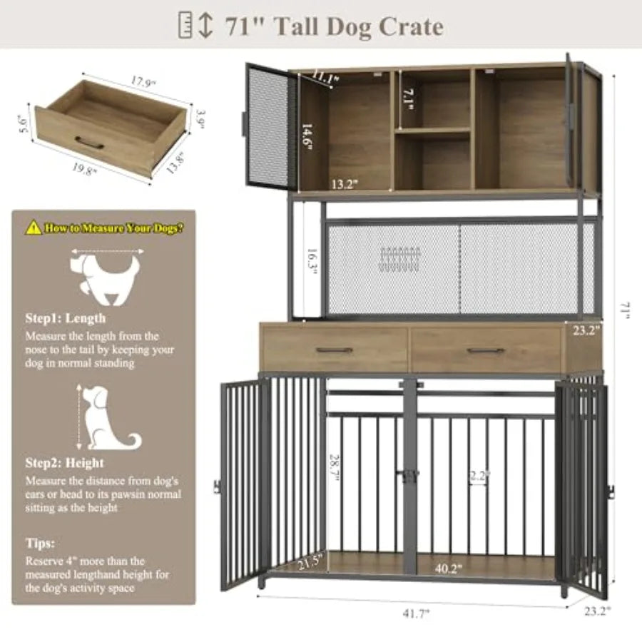 71 Tall Dog Crate Furniture Indoor Dog Kennel with Hutch 42 W Dog Cage for Large/Medium Dogs Wood Dog Crates with 2 Storage Dra