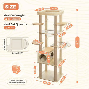 Effortless Assembly & Easy Cleaning: Enjoy easy maintenance with machine-washable cave pad & detachable top perch. This large cat tree includes pre-named parts, clear instructions for quick, frustration-free setup. Plus, we provide gloves to help you install easily. If you have any questions, you can always contact UYMI!