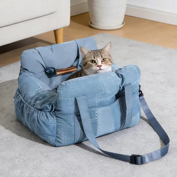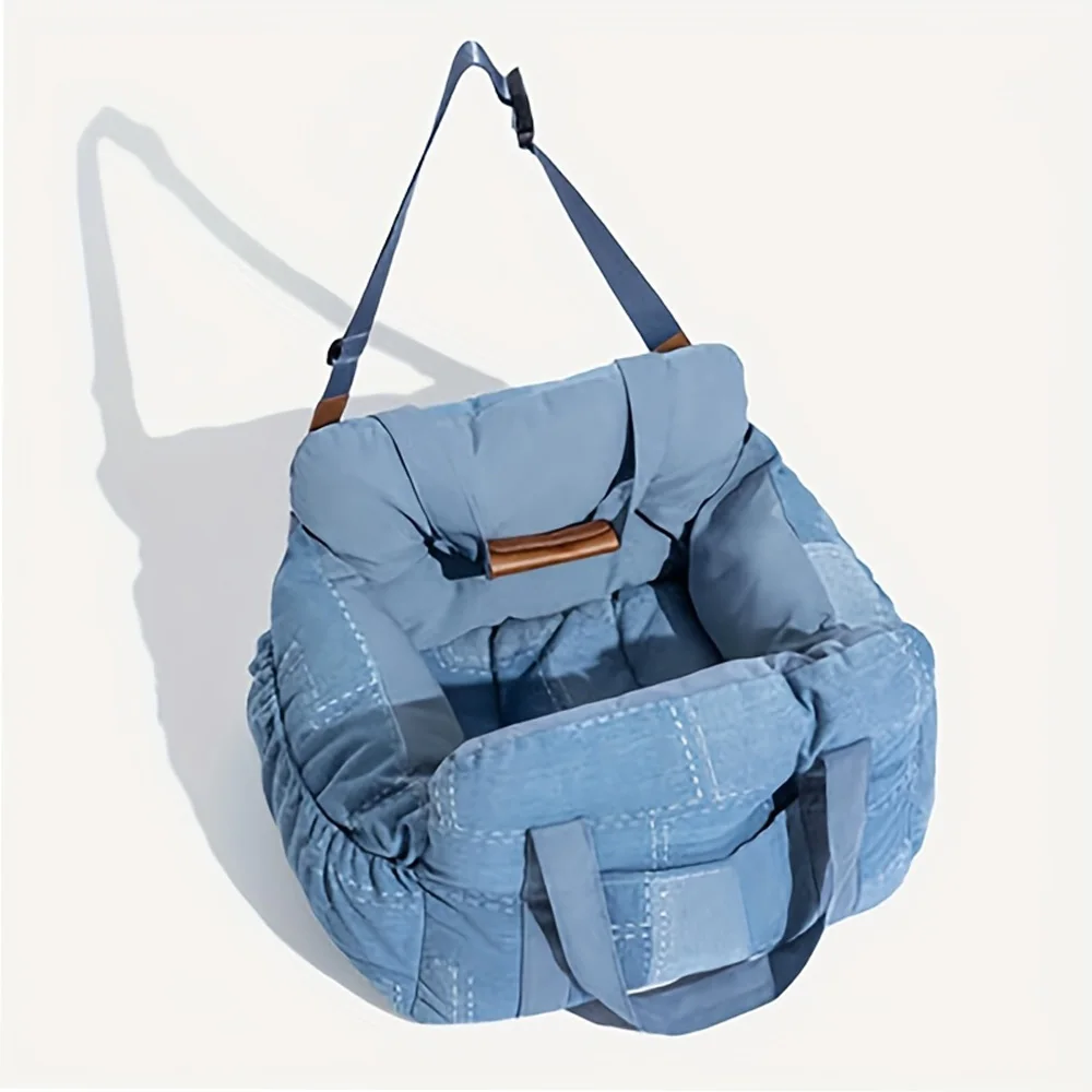 Adjustable Safety Dog Car Seat Bed Vintage Denim Patchwork Travel Pet Nest with Safety Buckle Washable Cats Booster Car Seat