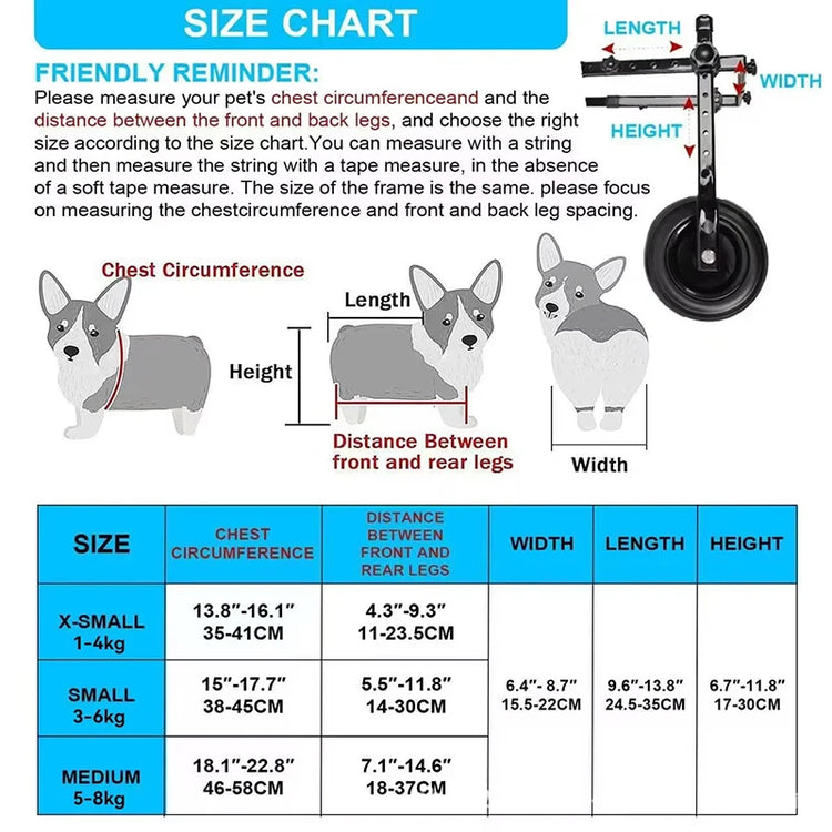 4,Lightweight and Comfortable Design: Weighing only 1.5 lbs, the wheelchair is constructed from high-quality, durable materials to provide stable support without burdening your pet, ensuring long-term comfort and ease of movement.