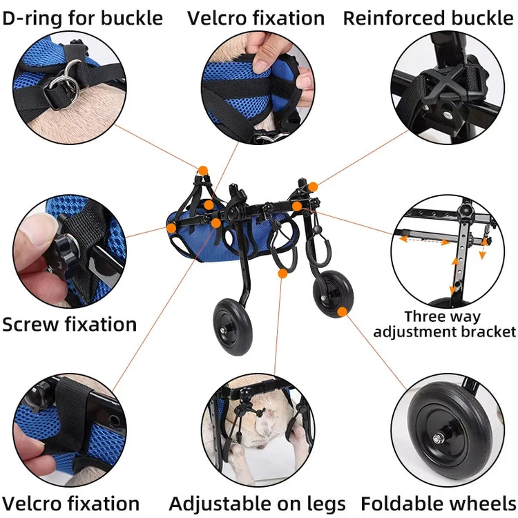 5,Fully Adjustable for Stable Support: The frame is adjustable in height, width, and length to suit various dog sizes and proportions. A proper fit ensures better stability and support for the hips and legs, minimizing discomfort.