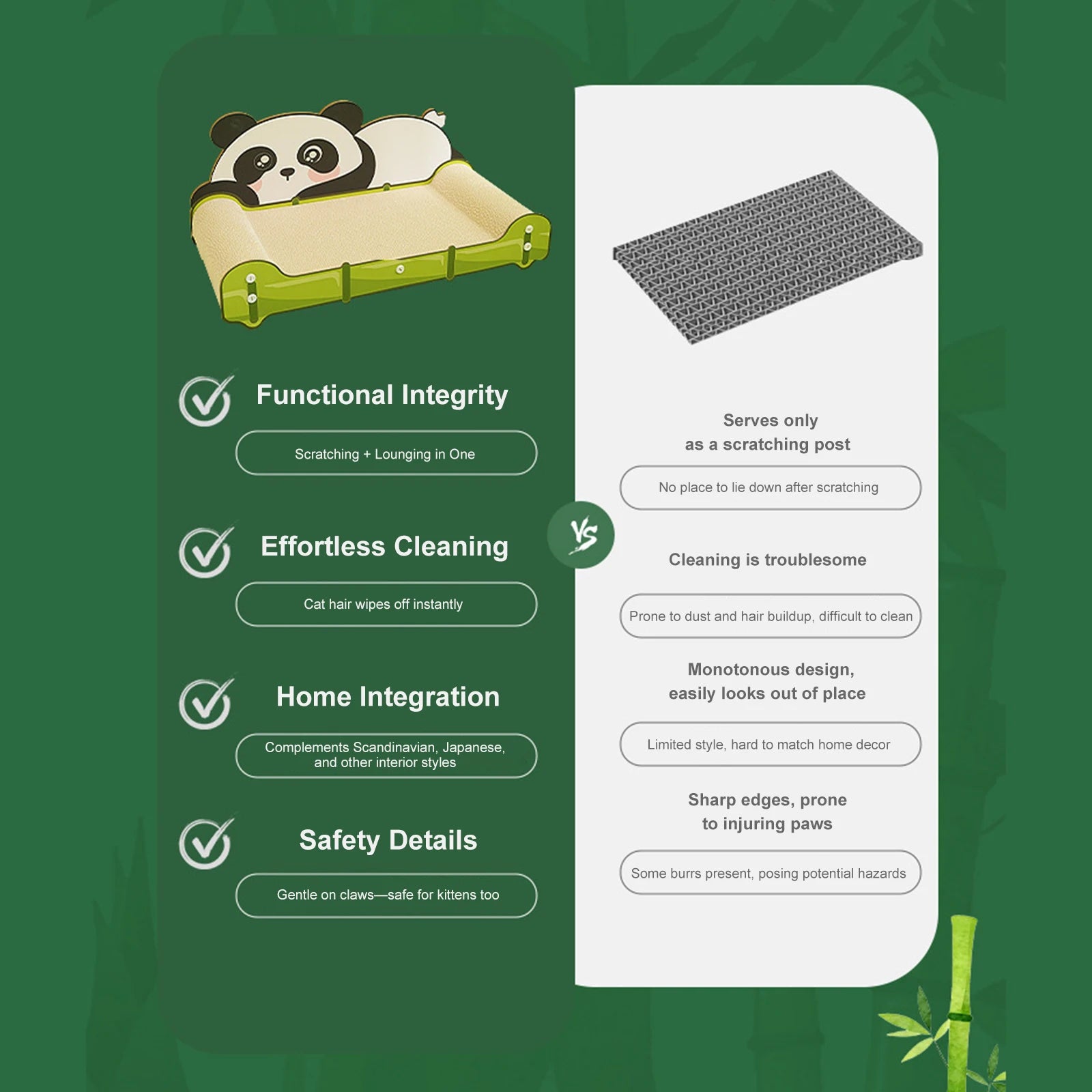 1.Spacious Comfort for All Cats: Designed as a large cat scratcher bed, this oversized board easily supports cats up to 20 lbs. It provides ample space for stretching, lounging, or multiple cats resting together, combining style and comfort in one sleek piece.