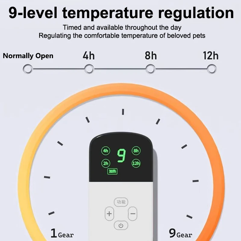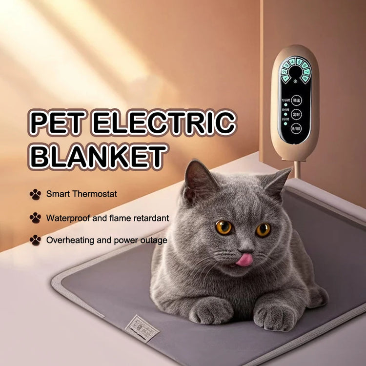 2,Quick Heated Pet Mat with Timer.The electric pads for cats with 4 timer function provide auto shut-off range from 2 to 8 hours (2H/4H/6H/8H), conserve energy and prevents burns caused by excessive heating,give your pets a warm winter.