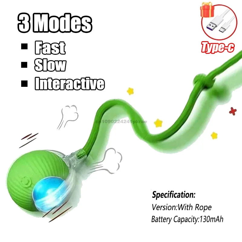 Cat Interactive Ball Toy Automatic Rolling Ball Faux Tail Rechargeable Pet Electric Toy Dog Cat Training Imitate Mouse Products