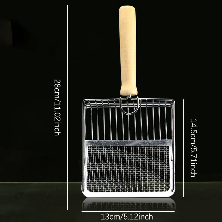 Cat Litter Shovel Stainless Steel Wooden Handle Easy To Rust Washable Kitten Litter Scoop Cats Toilet Cleaning Shovel Tool