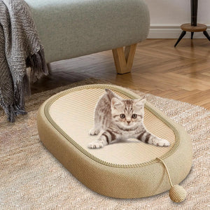 【Lounge Bed】: Features a oval shape that looks sleeping bed, a scratching lounge bed, interactive toy ball that draws your pet's attention, Cats can lie down on the pad like a bed or couch.