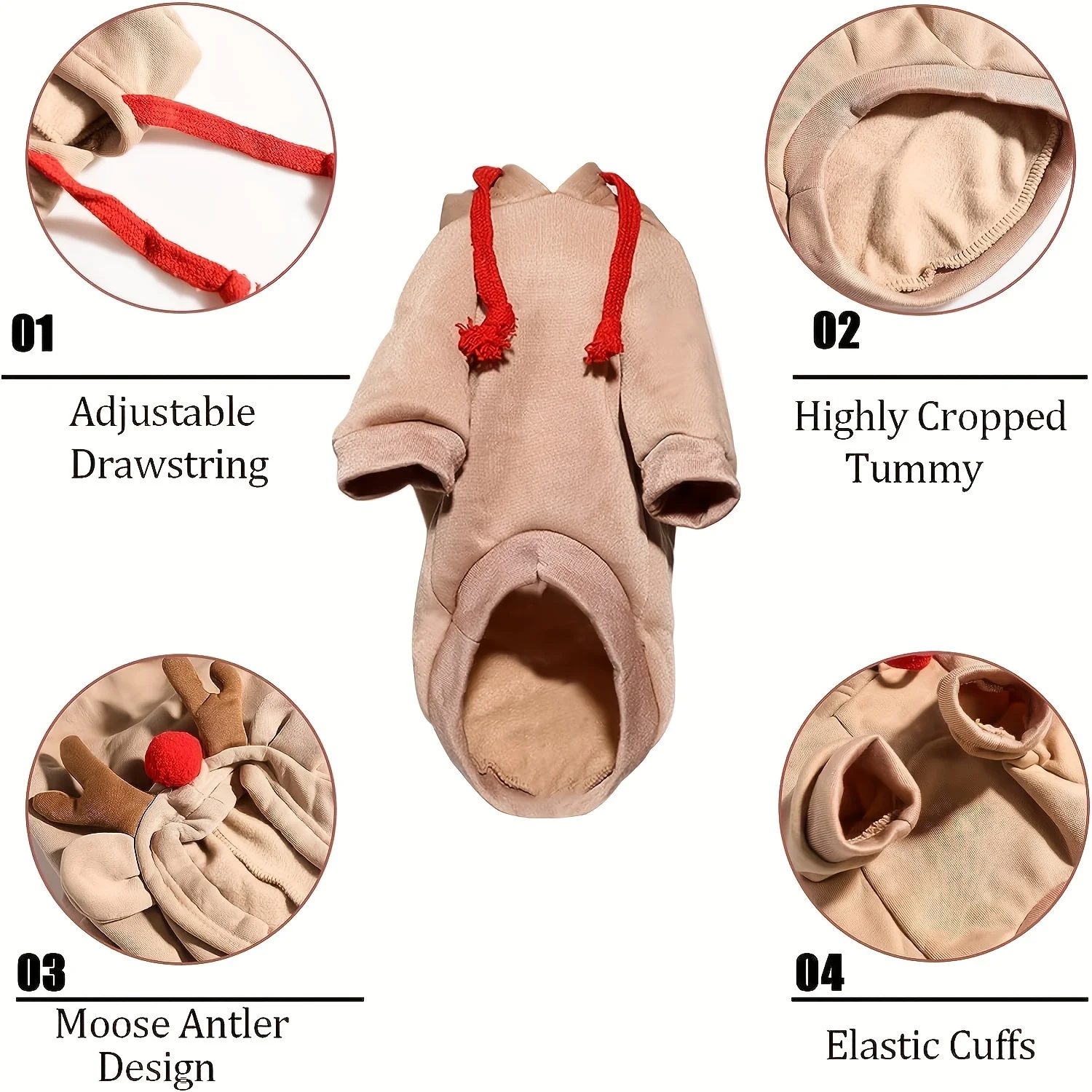 Cute Elk Dog Clothing Autumn And Winter Small Pet Clothes Thickening Warm Solid Color Two-Feet Hooded Wweater Casual Pet Product