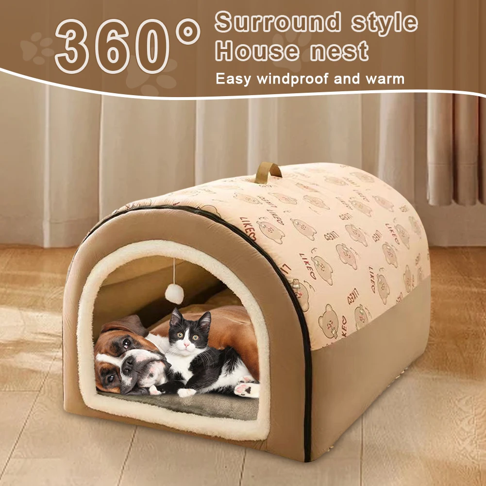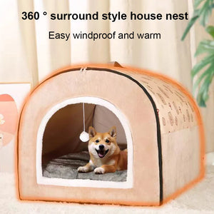 Dog Kennel Detachable Warm Winter Dog House Mat Washable Plush Cotton Puppy Shelter Winter Cat Bed Castle Dogs Cats Pet Supplies