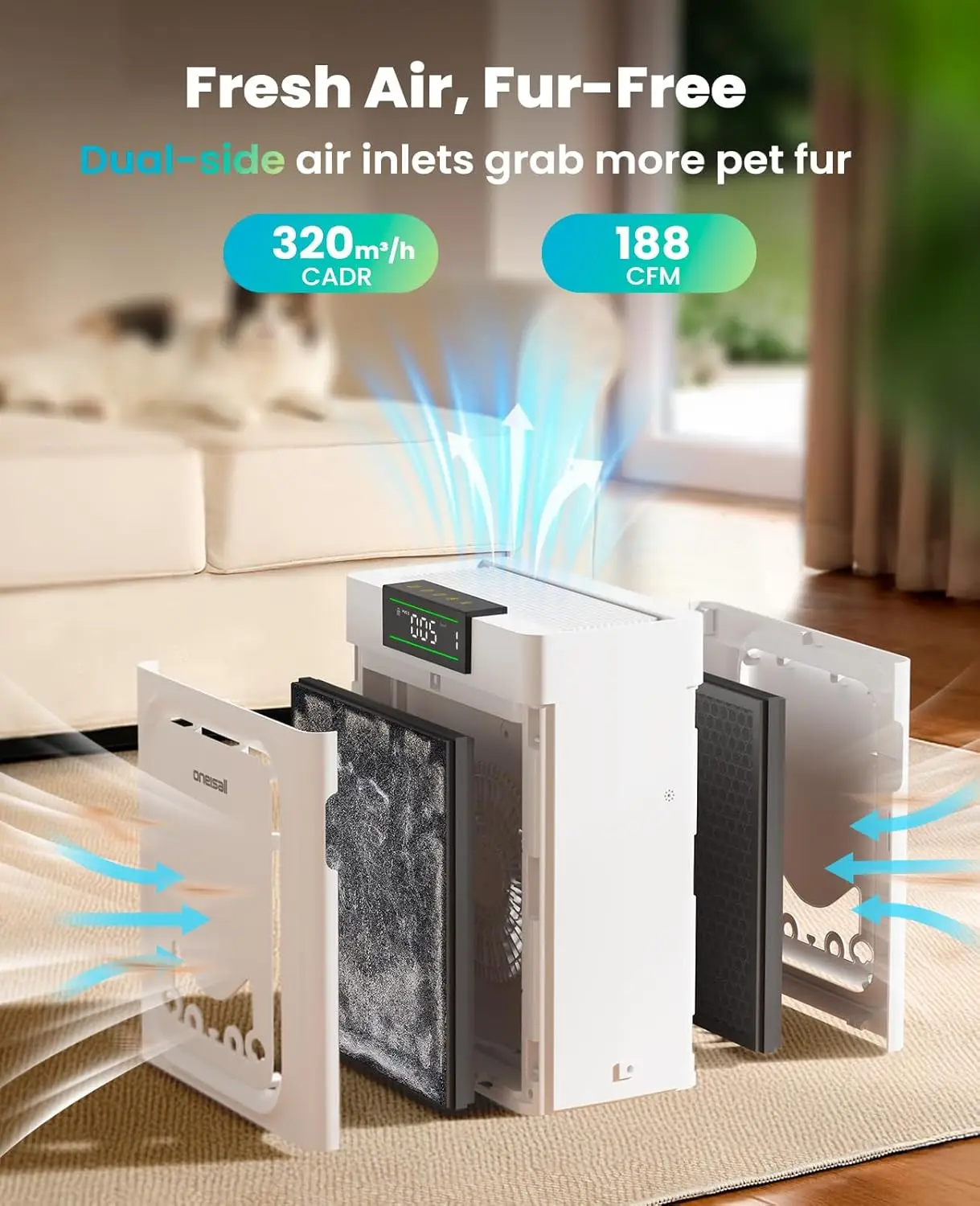 Double-Sided HEPA Air Purifier for Large Rooms Up to 2200 Sq Ft, Removes Pet Hair, Odors, and Allergens