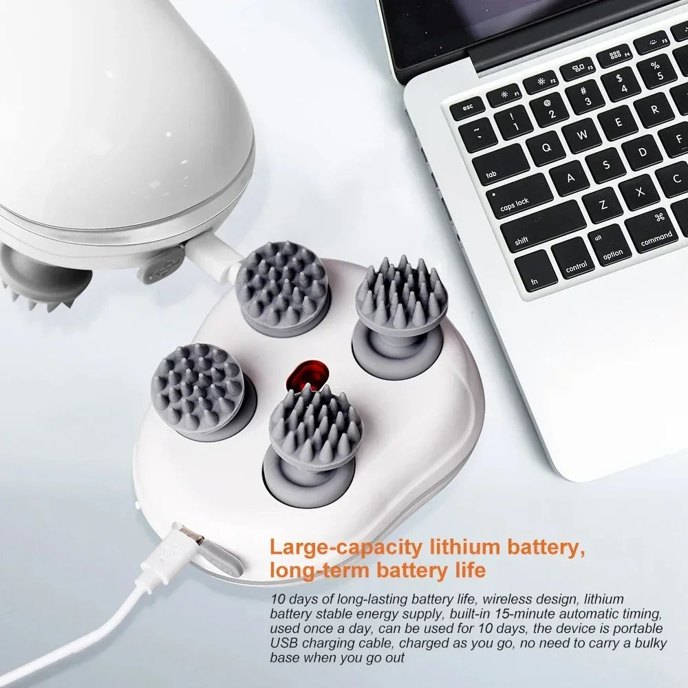 1. Deep scalp decompression massage: The scalp massager has 4 massage heads, 24 independent nodes, and 3D deep kneading, perfectly fitting the scalp, providing a 360 ° gentle massage experience.