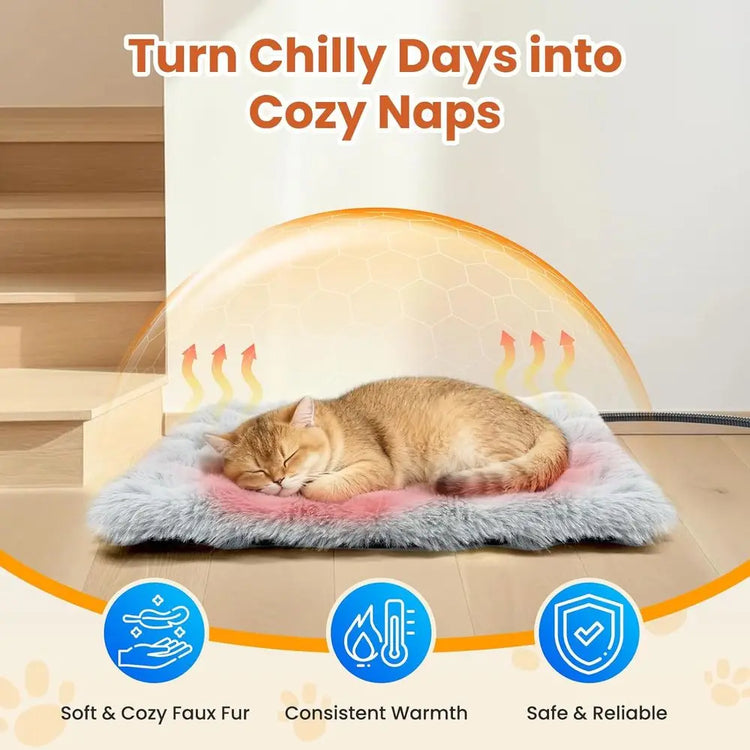 The removable cover, equipped with a durable zipper, is both machine washable and hand washable—staying plush without shedding or adding. The inner PVC heating pad can be wiped clean with a damp cloth, keeping your indoor pet heating pad fresh, hygienic, and long-lasting.
