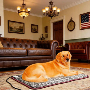 Old Dog Just Absolutely Loves It 200 pound Dog Heating Pad with Temperature Control This Dog Heating Pad comes with a digital display featuring 9 different temperature settings. The heated dog bed is perfect for indoor use and has a timer function with 4 different settings, making it easy to keep your pet comfortable all day and night.