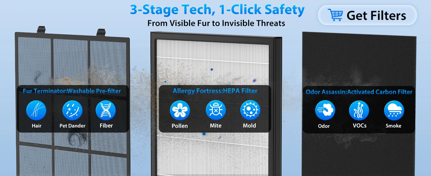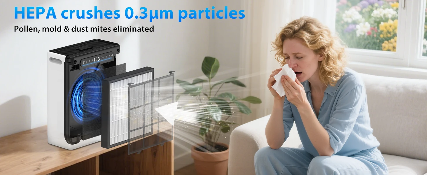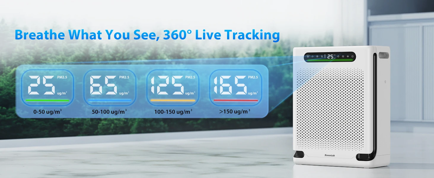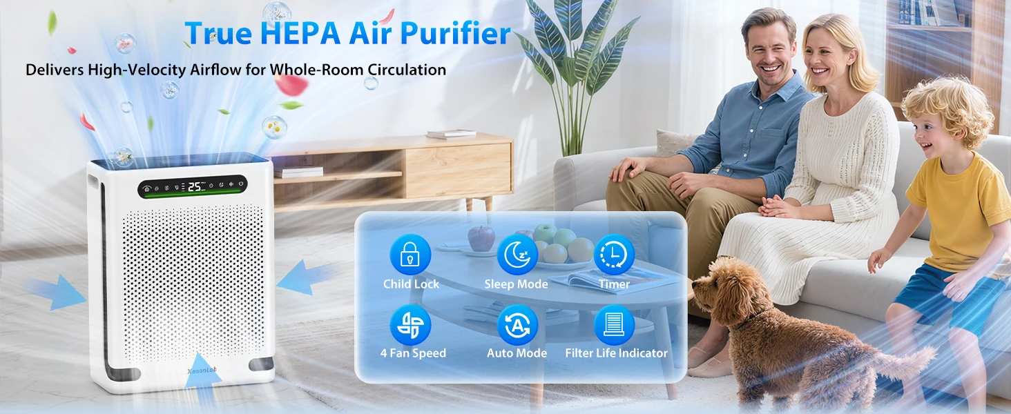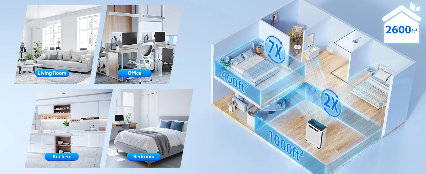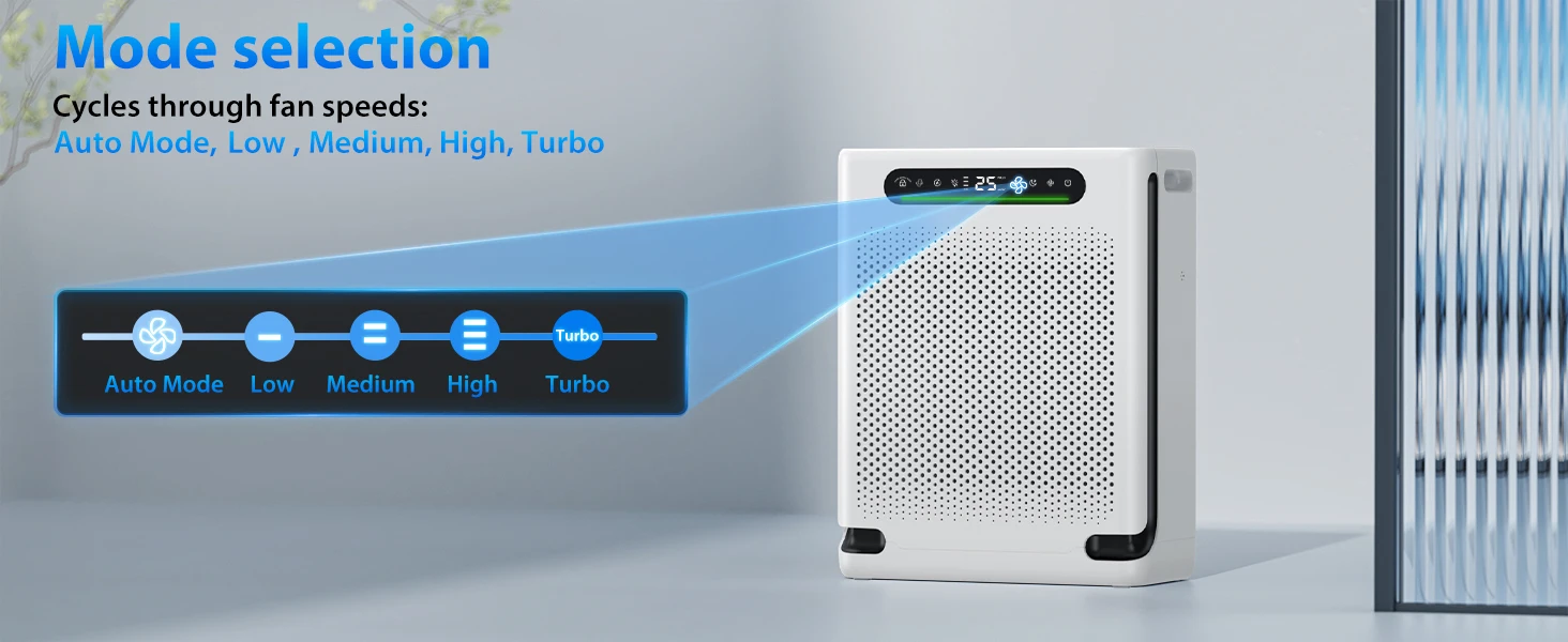 HEPA Air Purifier for Large Room Up to 2600 Ft², Washable Filter, Air Quality Display, Powerful Turbo Mode for Smoke Dust Pet