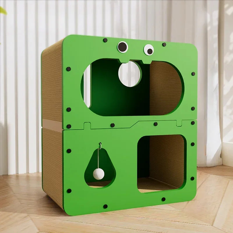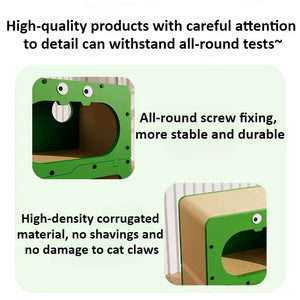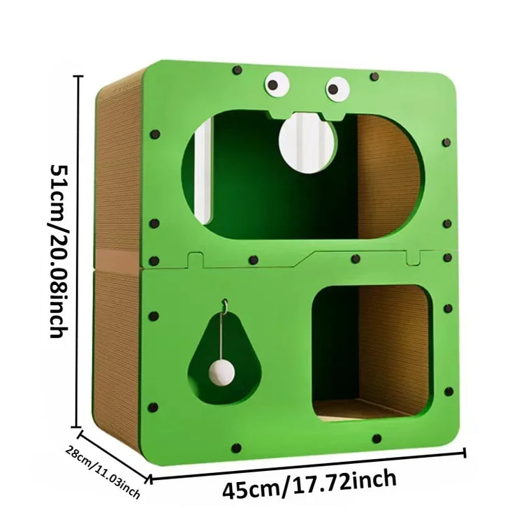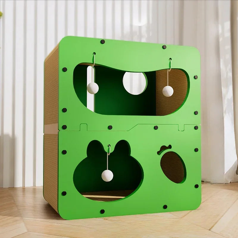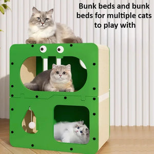 # l 2 in 1 Cat House with Scratcher Wooden Condo Bed Indoor Sturdy Large Luxury Shelter for Indoor (GREEN)
