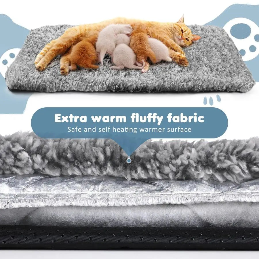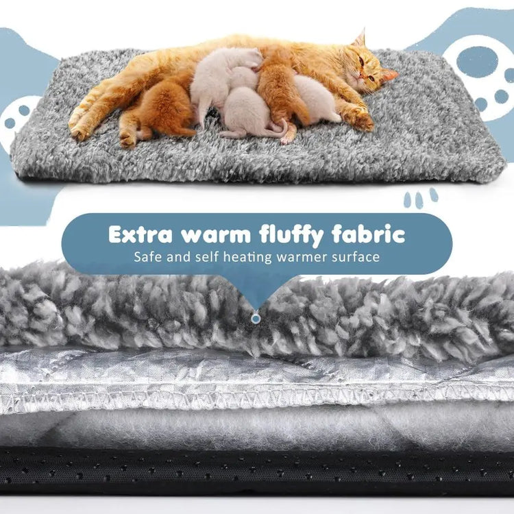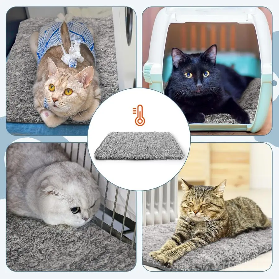 Designed for Pets the self warming cat pad has no plug or electricity needed, don39t need to worry about any kind of safety hazard or unwanted smell caused by using an electric pad, this self heating dog mat can reflect and retain your pet39s own body heat to create a warm sleep surface for pets to stay in a cozy place, keeping your pets toasty warm on cold days