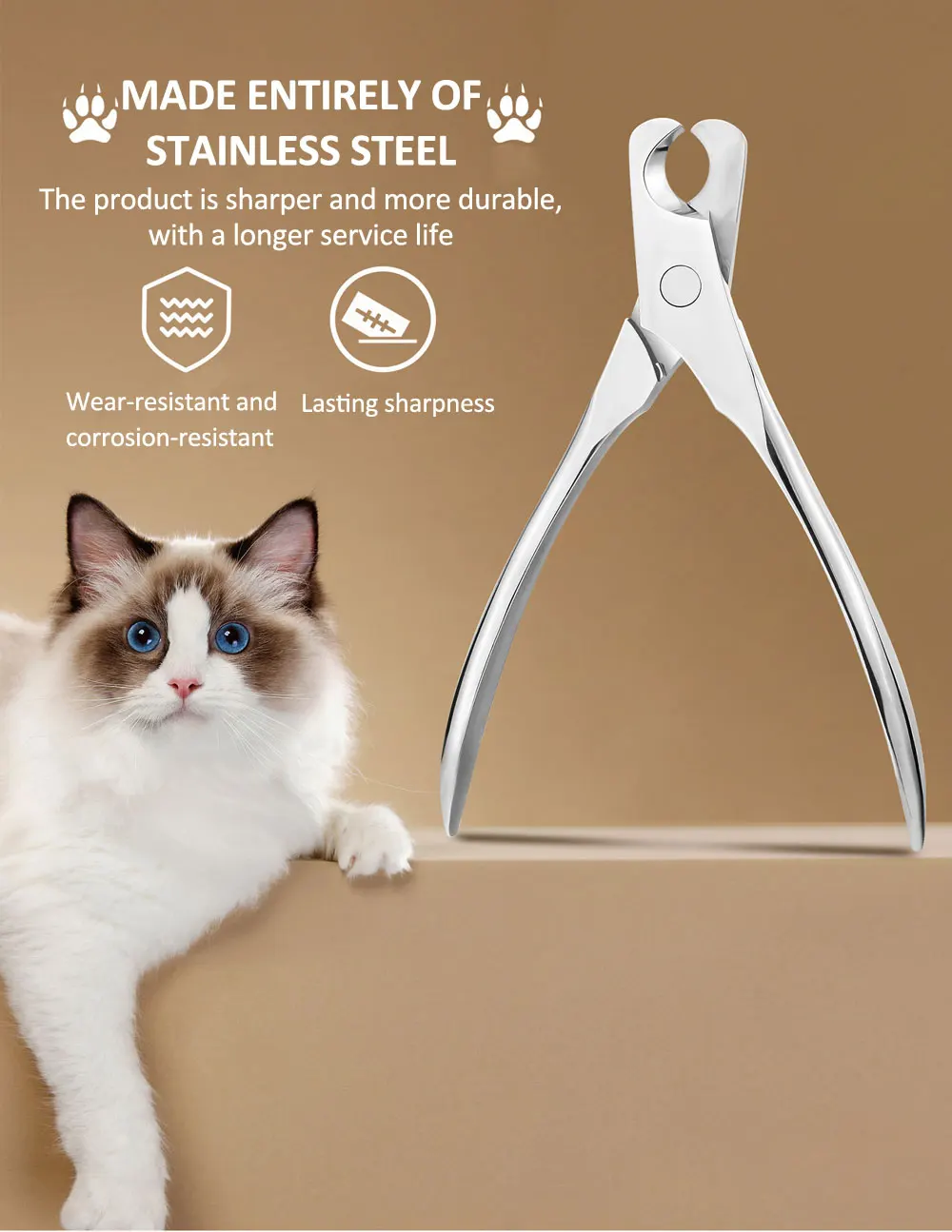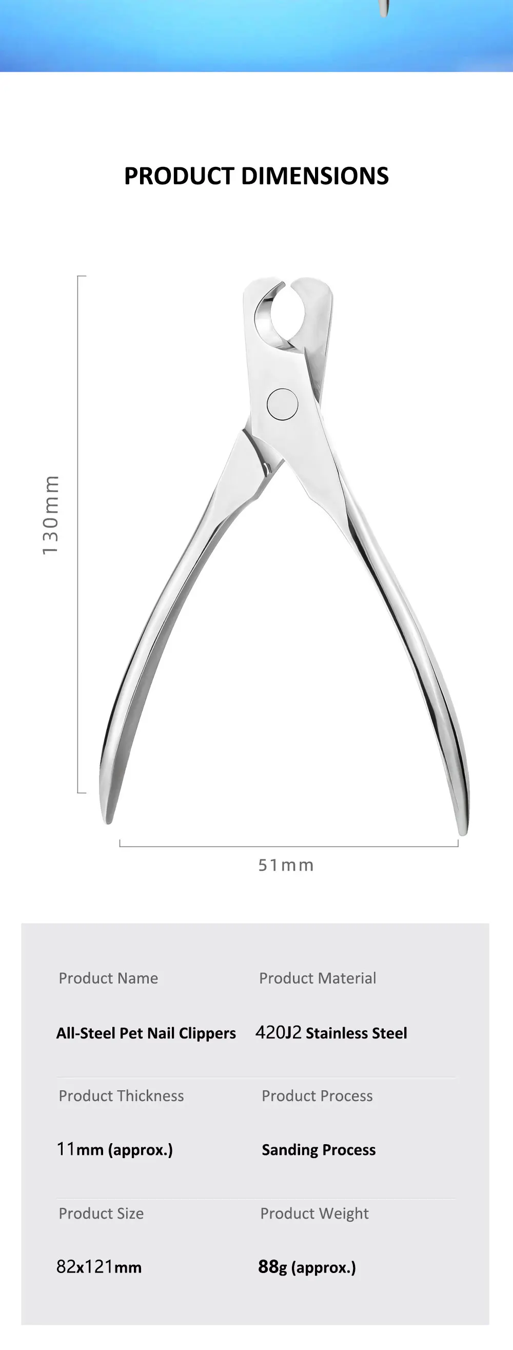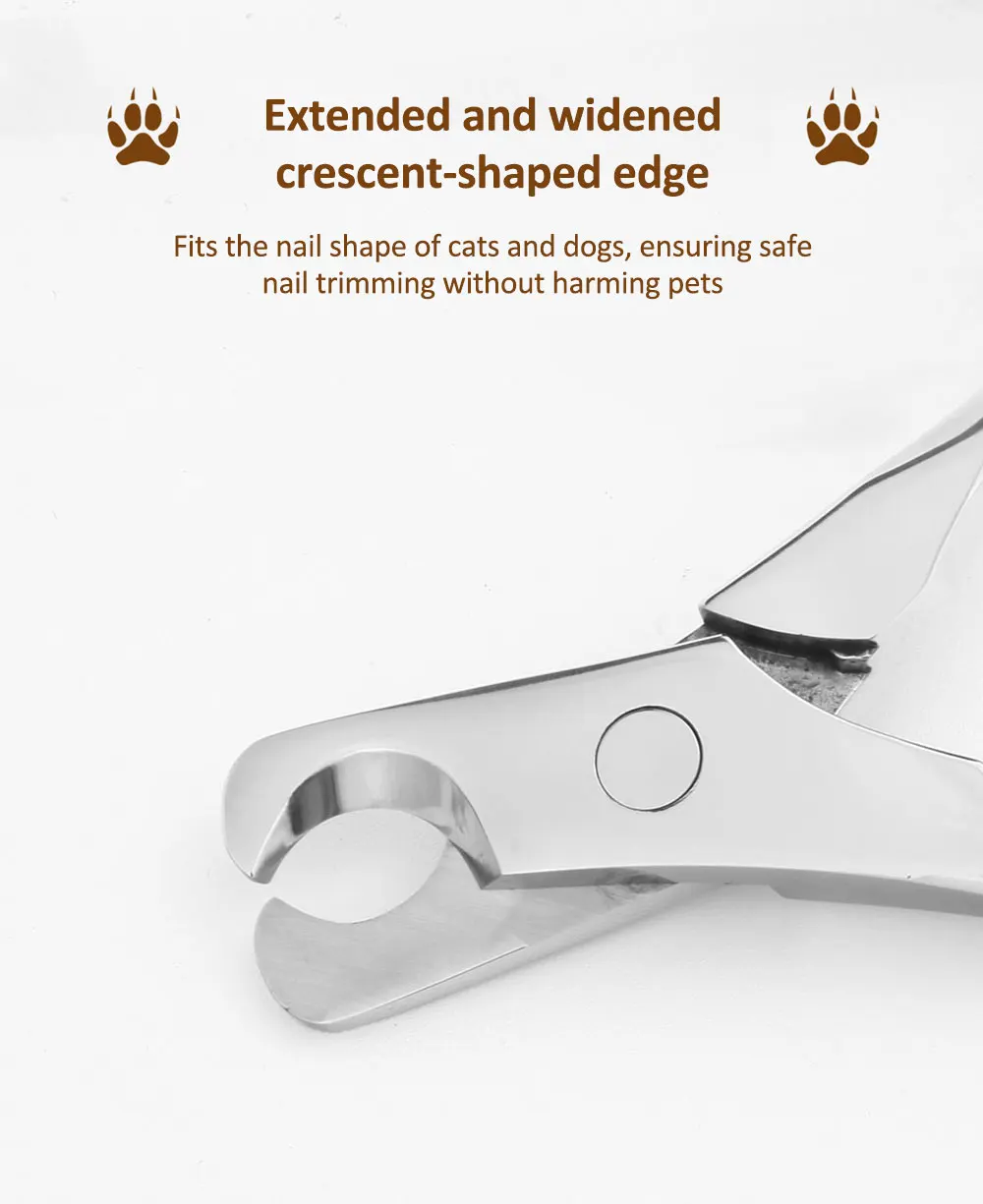 1. Extended and widened crescent-shaped opening, perfectly fits the nail shape of cats and dogs, ensuring safe nail trimming without harming pets.