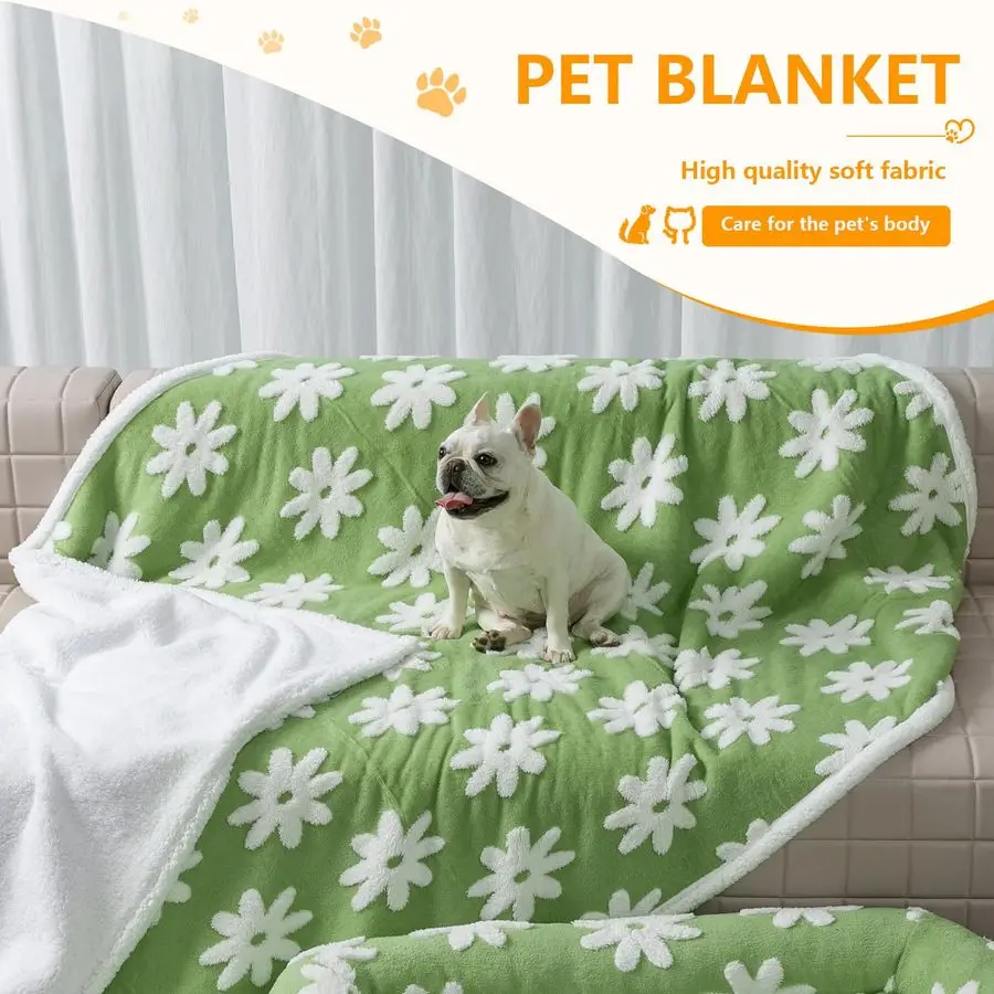 Pet Blanket,Green Dog Blankets for Bed Covers Couch Sofa Stylish Jacquard Pets Throw Blankets for Puppy Cats Washable Reversible