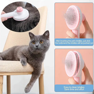 Featuring a round handle for comfortable grip, our Pet Brush ensures easy and hassle-free grooming sessions without tiring your hand. The one-click hair removal design simplifies the cleaning process, allowing you to focus more on bonding with your pet and less on cleanup.