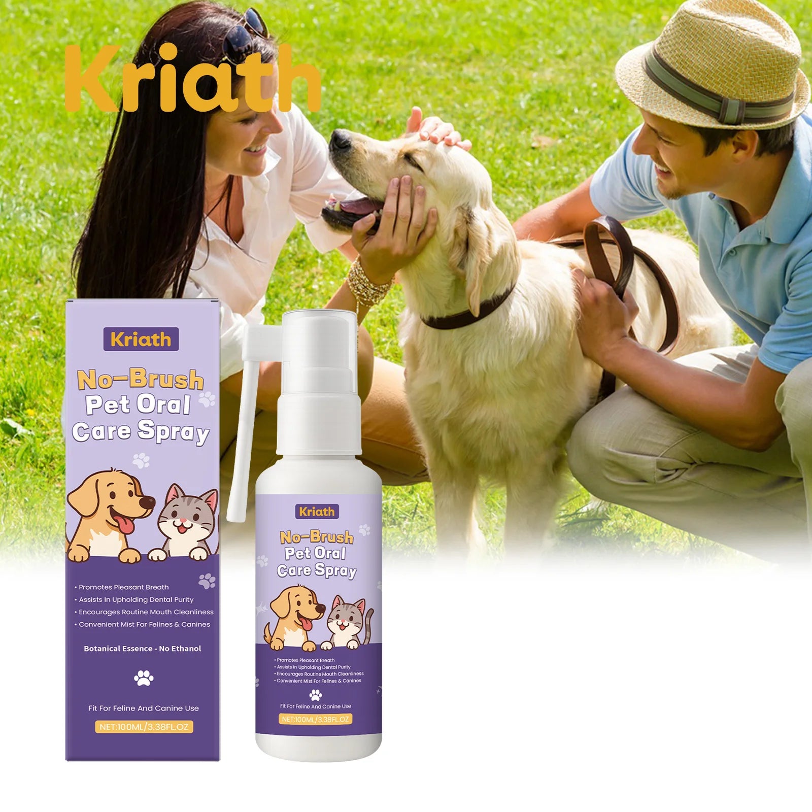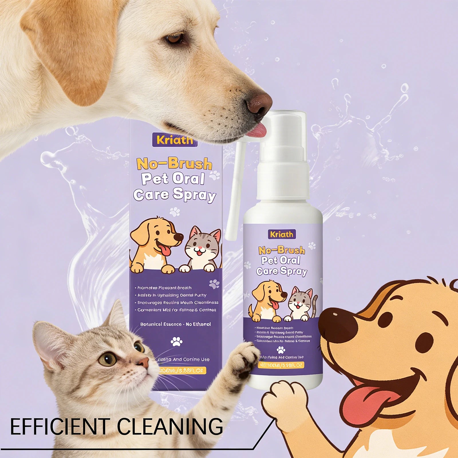 KRIATH Pet teeth spray effectively removing dental plaque relieve inflammation maintain oral health eliminate odor oral cleaning spray 100ml Boxed