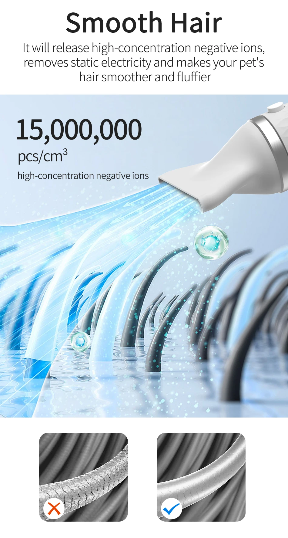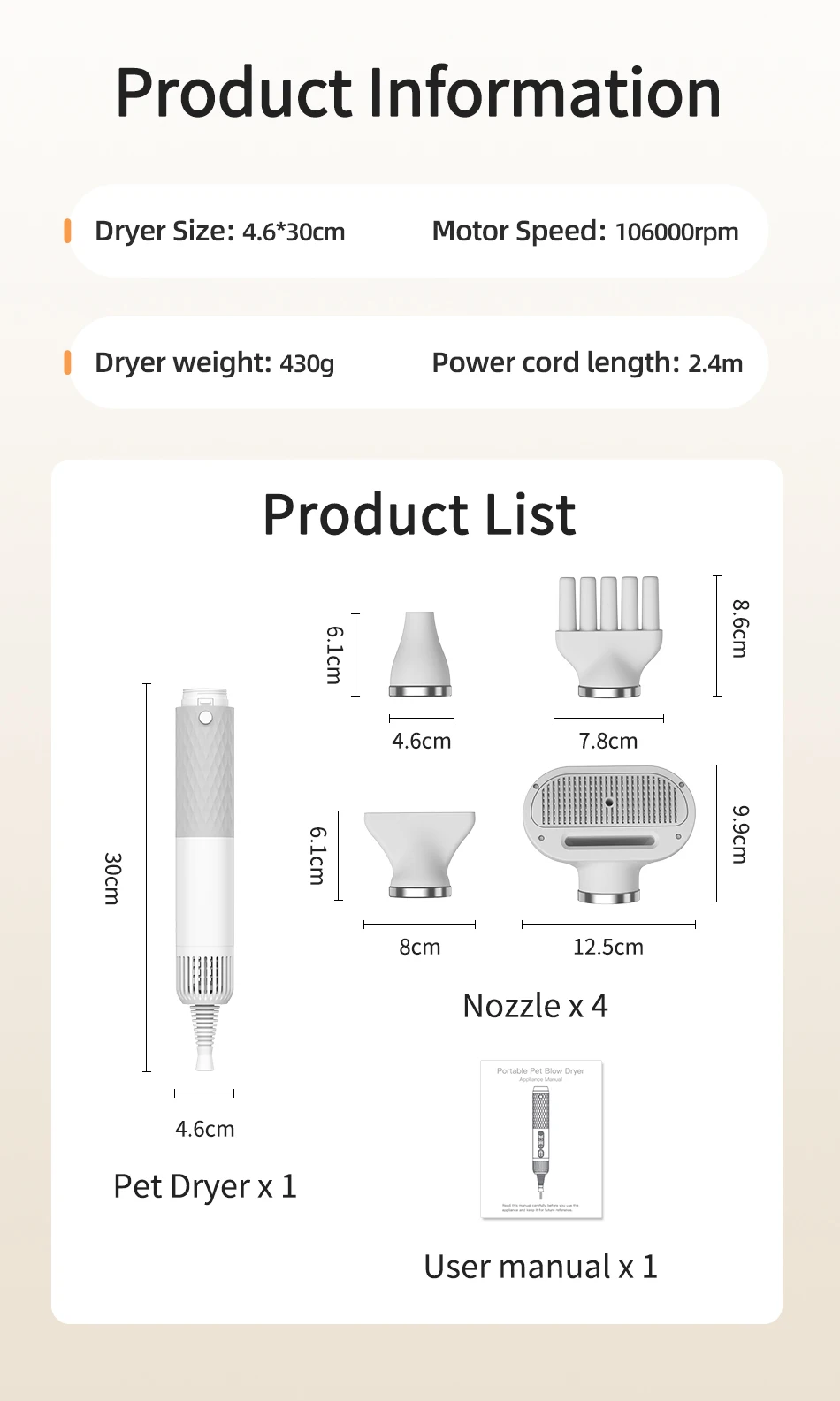 Portable 2 in 1 Pet Hair Dryer for Cat Dog Grooming Comb Brush with Electric Spray Water Steam Mute Pet Hair Water Blower