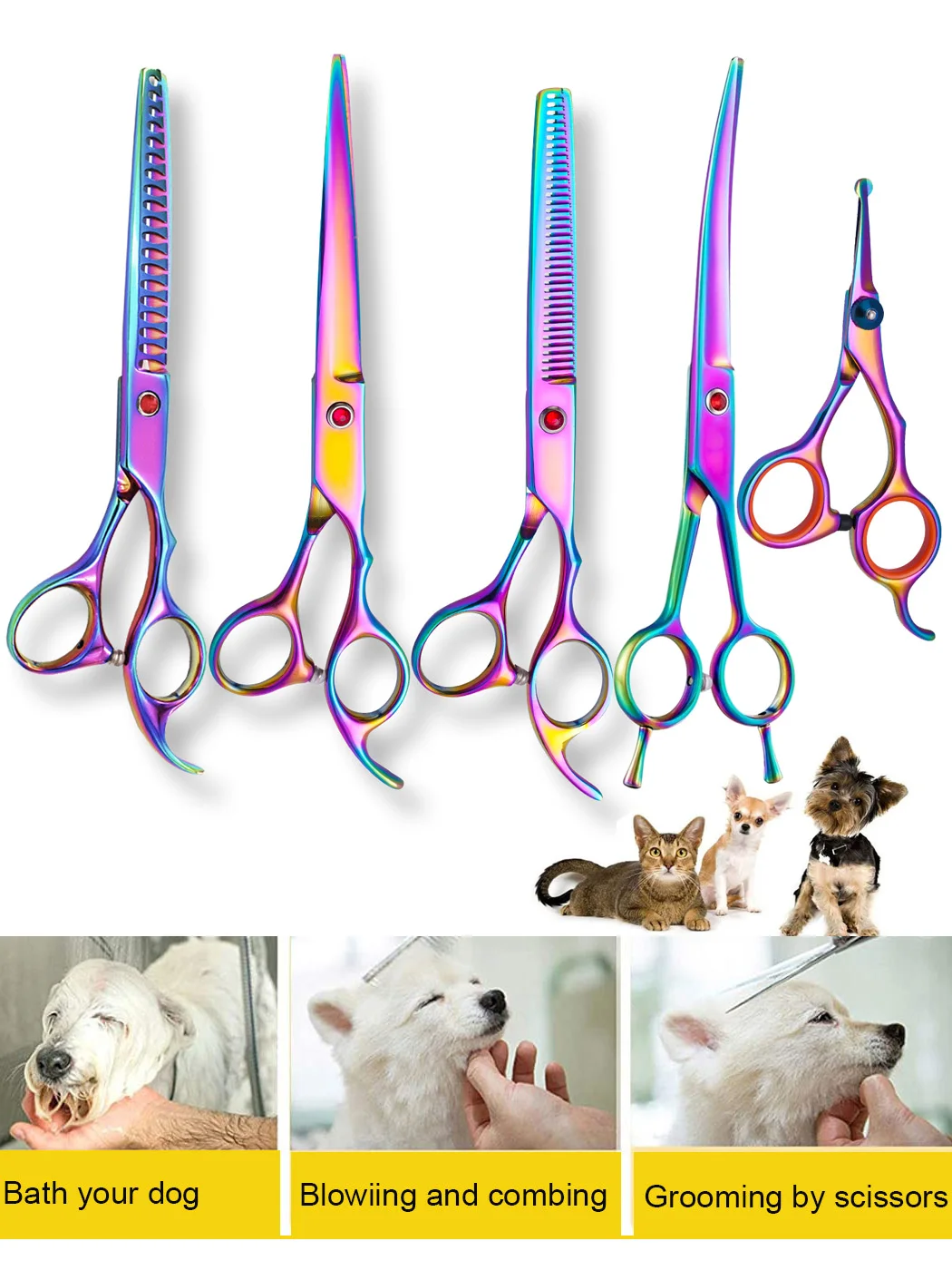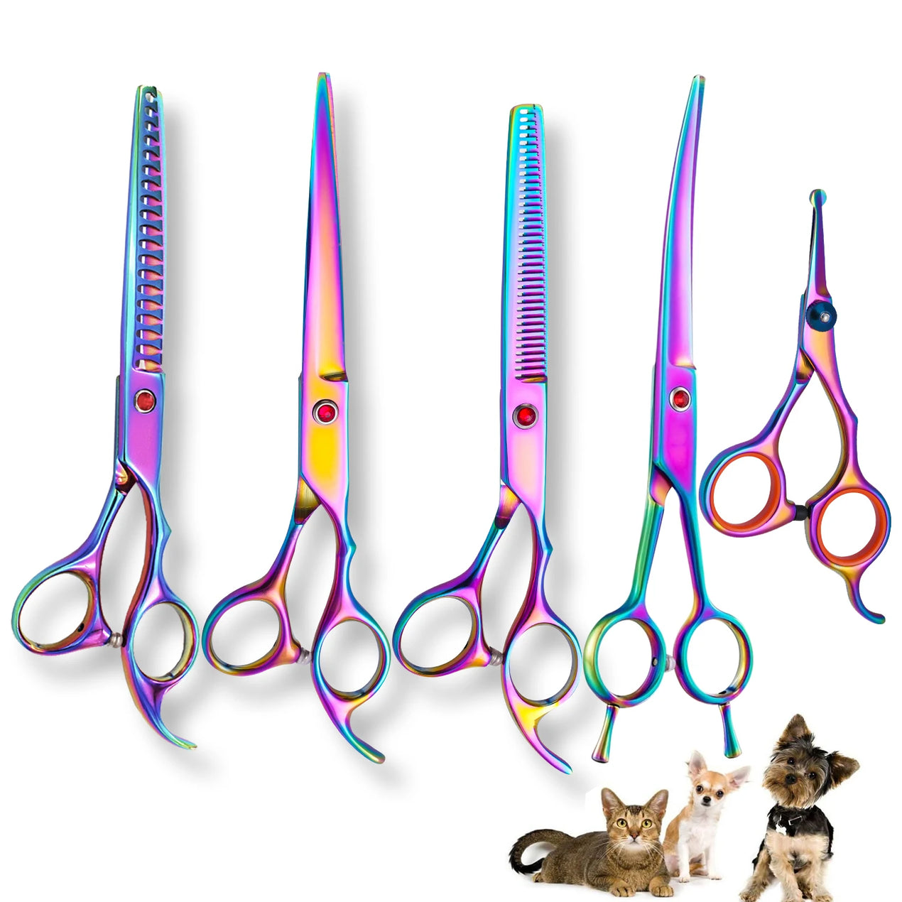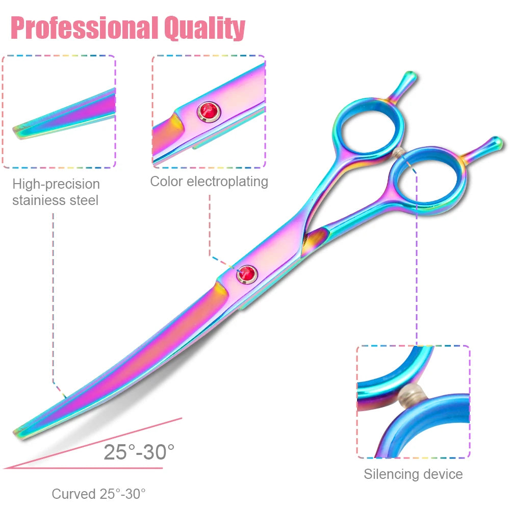 Professional Dog Grooming Scissors Curved and Straight Shears, Thinning and Straightening Hair Scissors For Dog and Cat Grooming