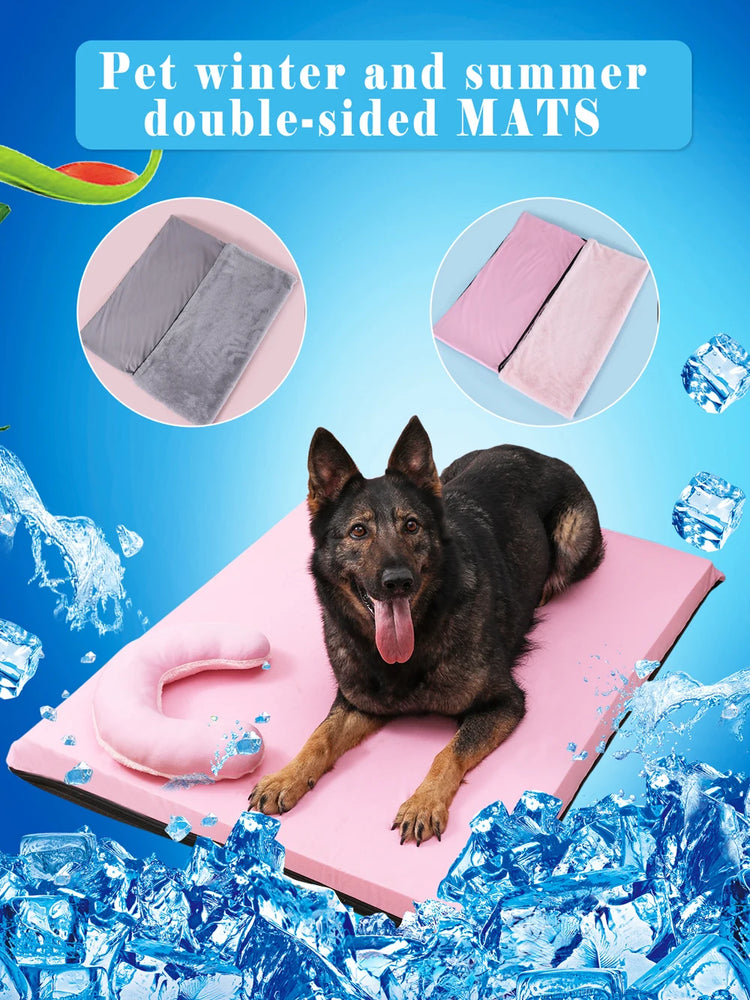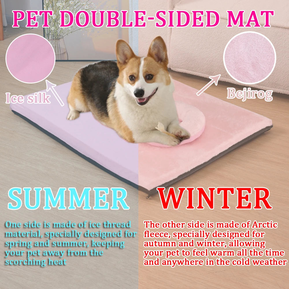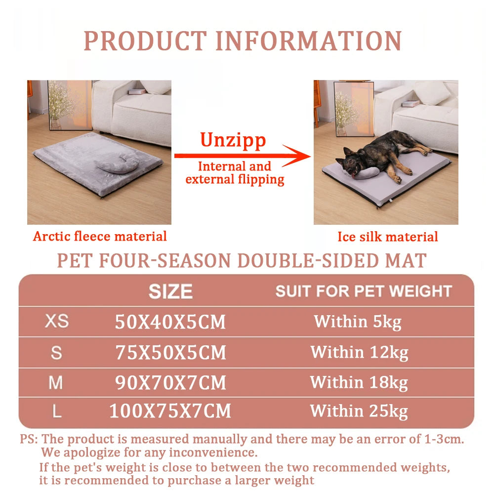 Small Dog Cooling Mat Large Dog Bed Detachable Double Sided Elastic Warm Cat Bed Mat Ice Silk with Pillow for Winter and Summer