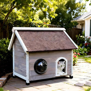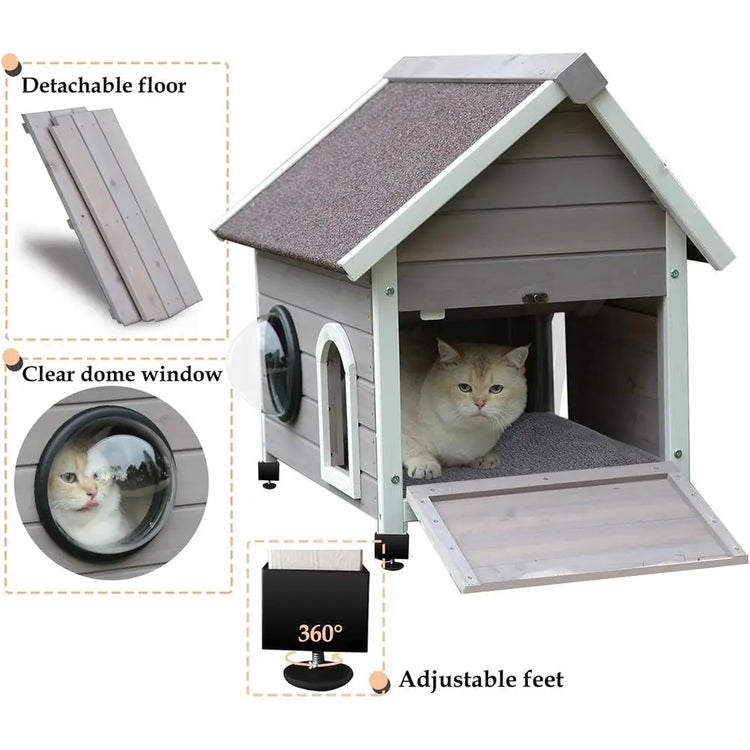 - Spacious Design: This cat house provides ample space [30.5L x 21.5W x 26H], suitable for 1-2 cats. The side door ensures your cat's safety in case of an emergency.