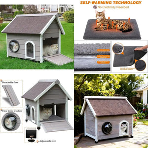 - Weather Resistance: Constructed from 100% fir wood, this solid and sturdy outdoor cat house features a raised floor to protect against moisture and rainwater. Additional features include an asphalt roof, removable floor, plastic feet, and a PVC curtain, making it an ideal outdoor shelter for your cat without worrying about inclement weather.
