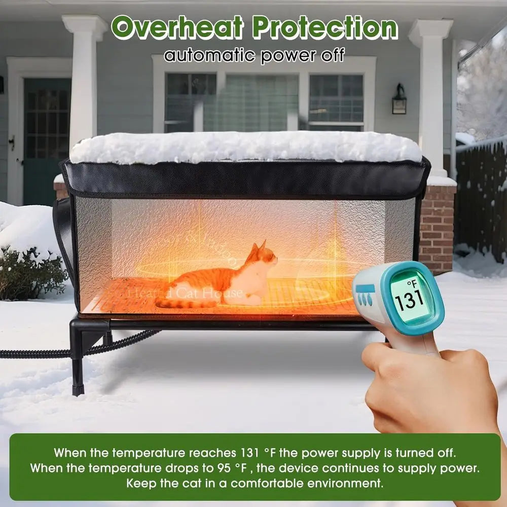 Safety and Durability: Constructed with safety in mind, the cat house boasts a sturdy build that resists collapse and wear. The heating pad is designed for pet safety, including chew-resistant cords, an Overheat protector, and a low-voltage heating system, ensuring peace of mind for you and a secure, warm shelter for your cat.
