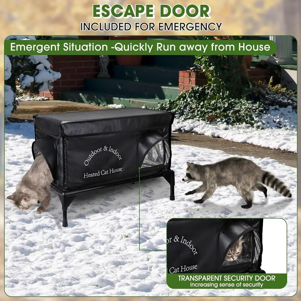 Cat House with Easy Door: Designed for cat safety, this cat house features an easy door that allows cats to quickly and easily exit if they sense danger, providing a secure environment.