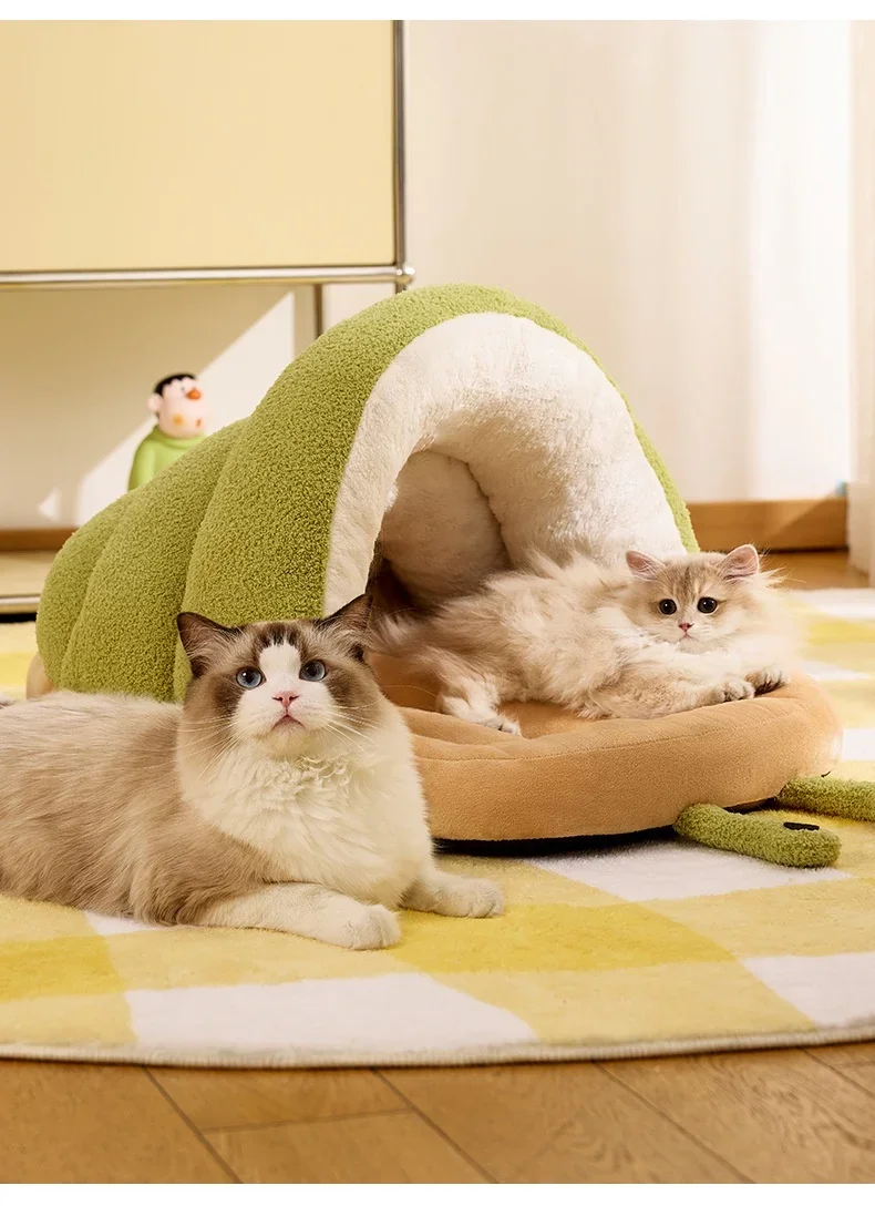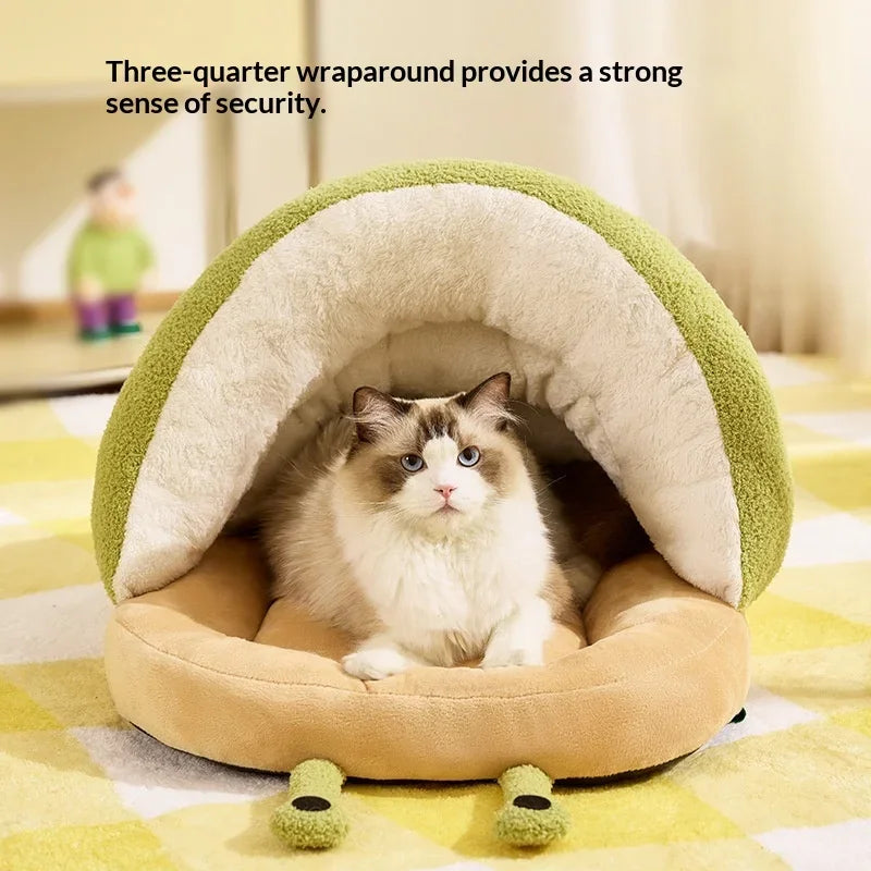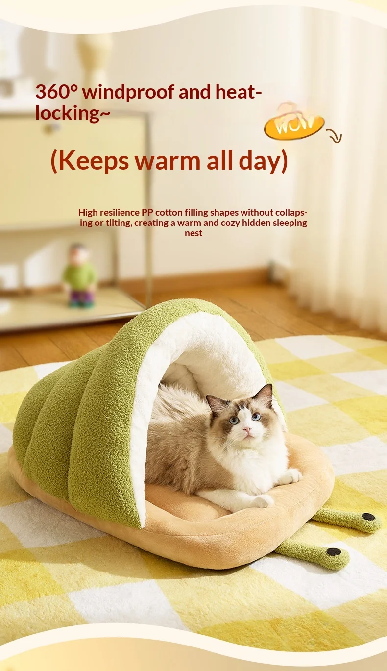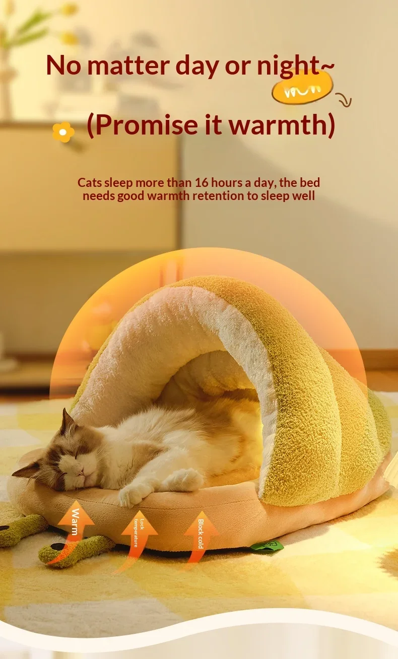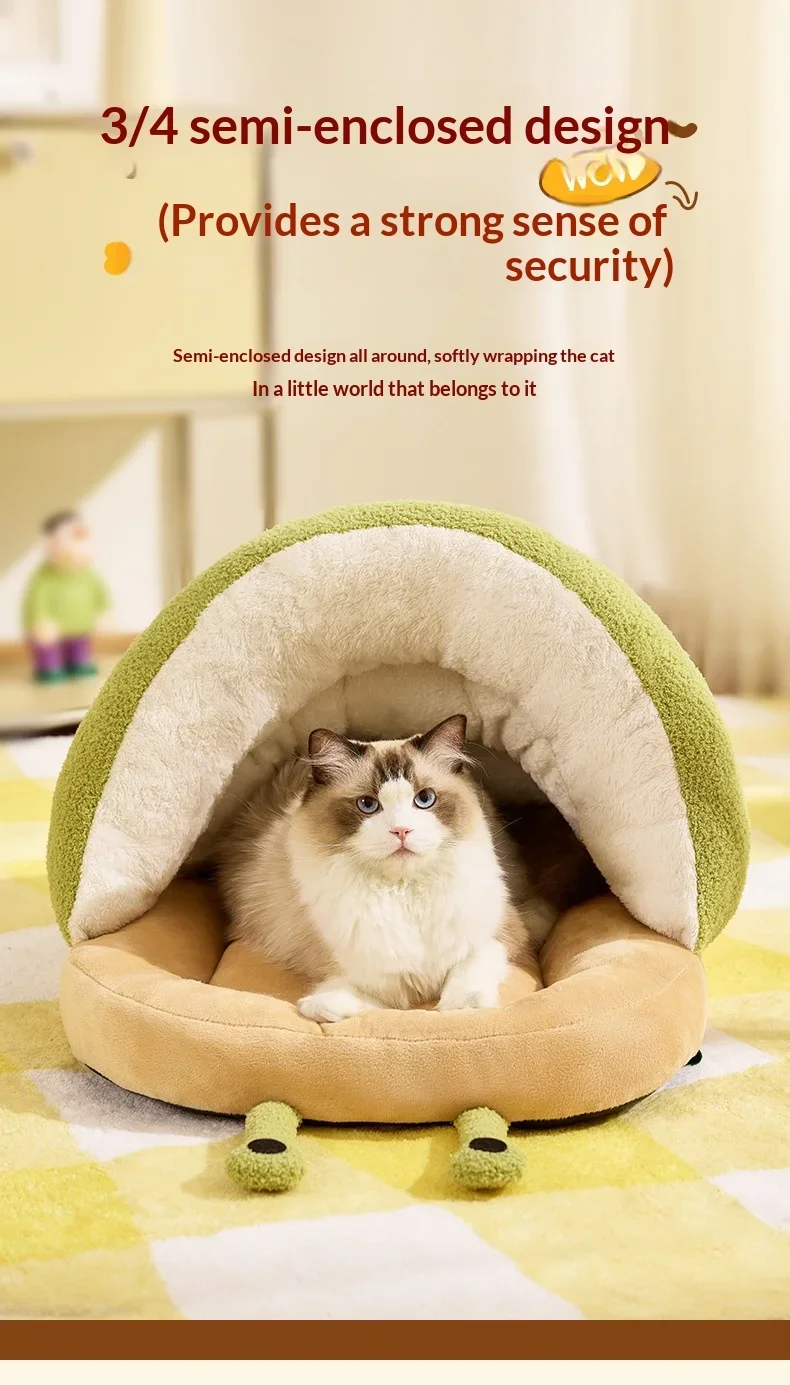 Winter Warm Cat Cave Bed Removable Cushion Calming Plush Cat Bed for Anxiety Cat Cave Bed Non-Slip Bottom for Cats Calming