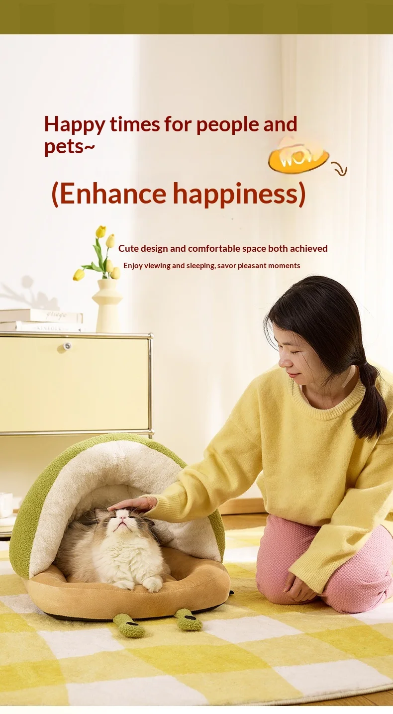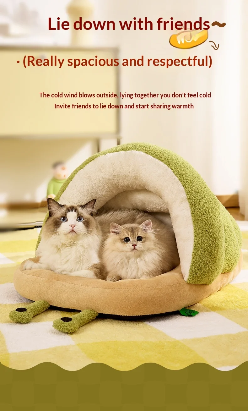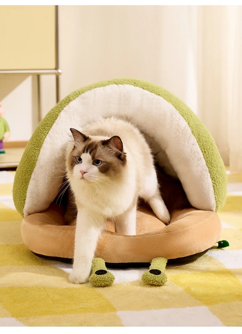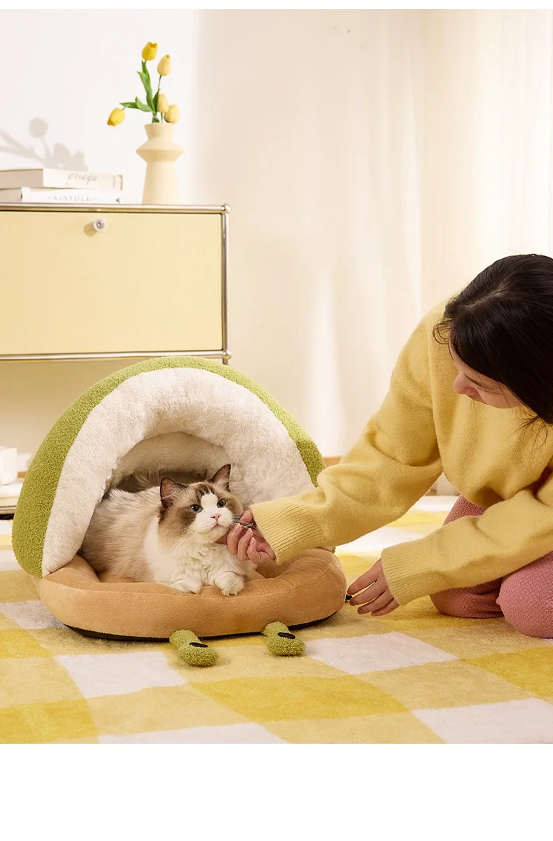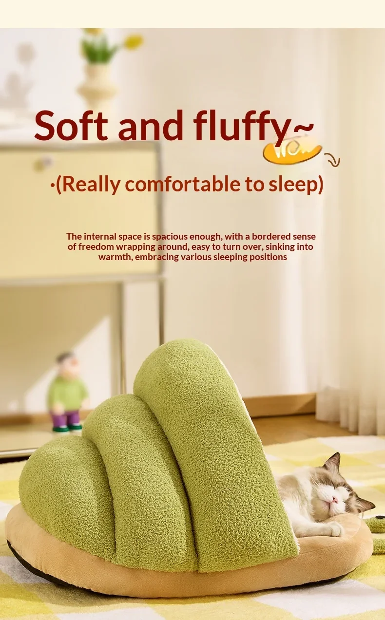 Winter Warm Cat Cave Bed Removable Cushion Calming Plush Cat Bed for Anxiety Cat Cave Bed Non-Slip Bottom for Cats Calming