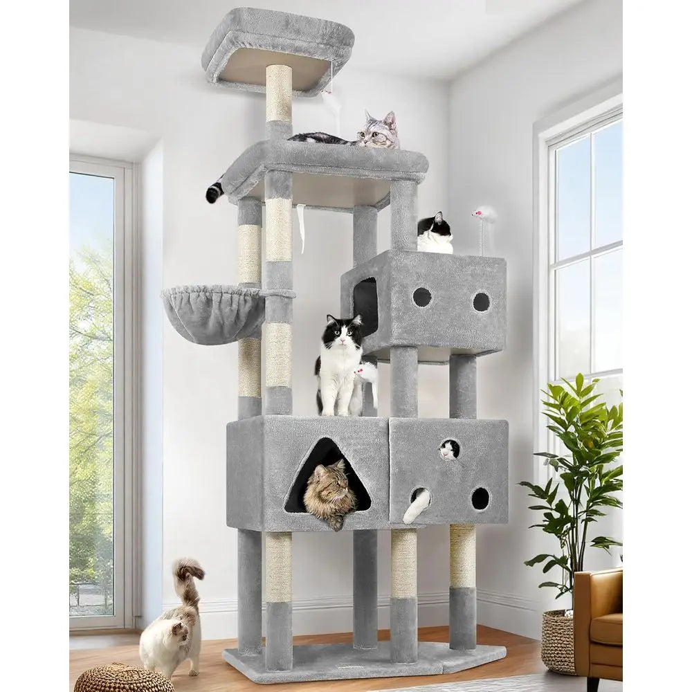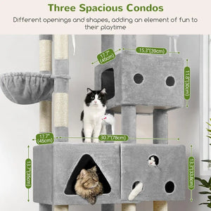 XXL 81 Cat Tower, Heavy-Duty Scratching Post for Large Cats, 3 Condos, 8 Posts, Light Grey